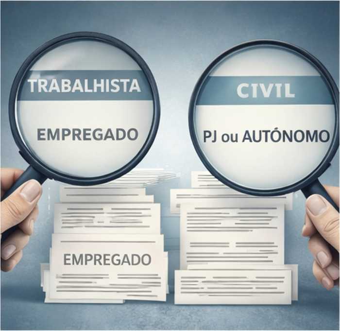As três perguntas queo STF vai responder: Aqui está o coraçãodo tema. Primeiro, se a contratação por PJ ou autônomo é lícita como estruturade contratação civil. Depois, a competência: a discussão sobre fraude emcontrato civil ou comercial fica na Justiça do Trabalho ou deve começar naJustiça Comum? Por fim, o ônus da prova, que é uma bomba silenciosa: quem acusaprecisa provar ou a empresa tem que provar que não fraudou?